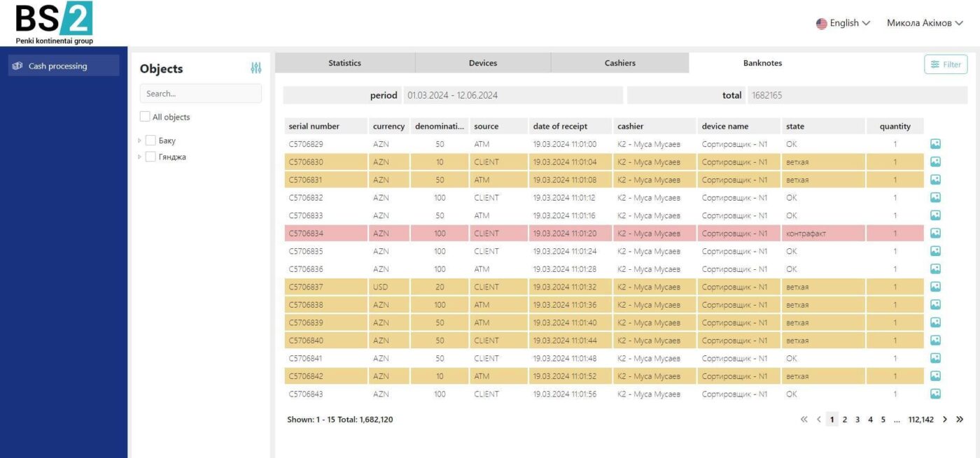 The new functionality allows for the collection and systematization of data on the quantity and quality of processed notes, up to their serial numbers, facilitating the generation of reports across various parameters—from cities and branches to cashiers and banknotes.